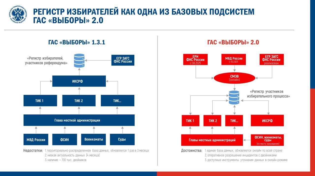 03.02.2026ЦИК России постановила ввести ГАС «Выборы» версии 2.0 в постоянную эксплуатацию с 6 февраля 2026 года.